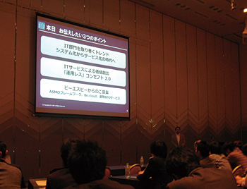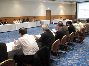 セッションでは、専門家によるシステム運用部門の役割について提案が多く出された(右奥に座るのが元大成建設のCIOで現在オランの木内里美氏) この日はこのほか、1時間半にわたる三つのセッションが行われた。このうち、前回のシンポジウムに続いて2回目の講演となる大成建設の元CIO(最高情報責任者)であるオランの木内里美氏が「経営におけるITの役割、システム部門の役割」について講演。氏は「企業のシステム運用は“お守り”ではない。経営にITを生かすには、運用を考えろ」と苦言を呈し、経営幹部が直接システム運用に関与する組織体制と、企業内の利用者をファシリテイト(促進)するIT担当者を育てるよう提言した。