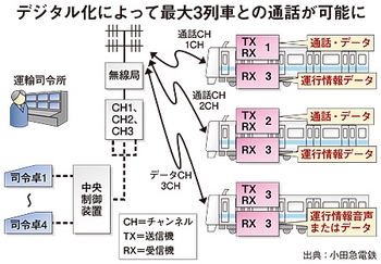 小田急電鉄は今後、新しいシステムを活用し、音声だけではなく、文字による情報交換も開始する。デジタル方式だから可能なことだ。これまで音声通話によってのみ行っていた運輸司令所からの指示や通告を、文字伝送で乗務員室のモニタ画面に表示する。文字を使って、ダイヤ変更や異常気象の発生といった情報を乗務員に正確に伝えていく。(ゼンフ ミシャ)