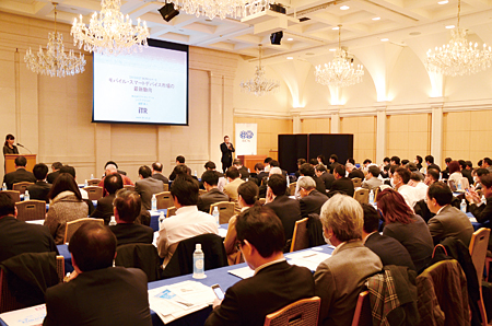 BCN(佐藤敏明社長)は、3月27日、日本ワムネット(福井信之社長)との共催で、「SIerのためのビジネス講座Vol.5」を東京・表参道で開催した。今回のテーマは、「モバイル・スマートデバイス市場の最新動向とビジネスチャンスを創出する最適ソリューション」。モバイル・スマートデバイス市場の最新動向や、実際に利用するうえでの懸念事項、ユーザーへの最適な提案方法を識者が紹介したほか、会場では日本ワムネットによる製品の展示が行われた。SIer(システムインテグレータ)や関連製品販社関係者ら約100人が参加し、熱心に聴講した。(取材・文/真鍋武)