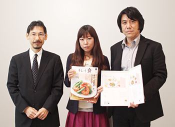 『キレイ食』を手にするジョルダンの太田直之・メディア事業部長(右)、横田直子・事業推進室サブマネージャ(中央)と、渡辺美樹・富士ゼロックス事業開発センターメディア事業プロジェクトサブリーダー【効果】O2Oのビジネスモデル構築へ
