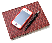 ●日常使う営業ツール.......... ファッションやアクセサリを展開するブランド「kate spade NEW YORK」のiPhoneケースとノート・ペン。渡辺さんは、外出中にも常に会社のメールをチェックするので、iPhoneは欠かせない。その大切なビジネスツールをキズから守るケースは「かわいいデザインを重視して選んだ」そうだ。