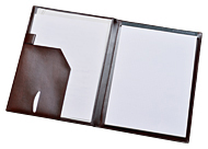 ●日常使う営業ツール.......... 革表紙のメモ帳という、ごくアナログなツールを、ITのソリューション提案に生かしている。商談の場で客先の課題を文字化し、相手に手渡して確認する。こうして、次の提案へのヒントを得ることを心がけている。