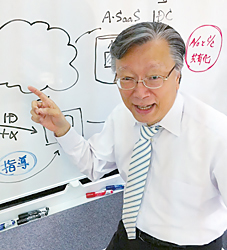 A-SaaSの森崎利直社長は、自らのビジネスモデルの強みを社内に周知徹底している 専用機は高額だ。顧問先企業にも会計ソフトウェアなど高額なシステム投資が発生する。中小企業の会計処理は、クラウドが普及した今も、世の中の流れから取り残されている。経済産業省が09年3月に開始した中小企業向けSaaS活用基盤整備事業「J-SaaS」は、自計化(ITを使って自社で財務処理をすること)ができない状態を見直すことを目的としていたが、会計事務所などの「士業」の実状を知らずに進めたために失敗に終わる。