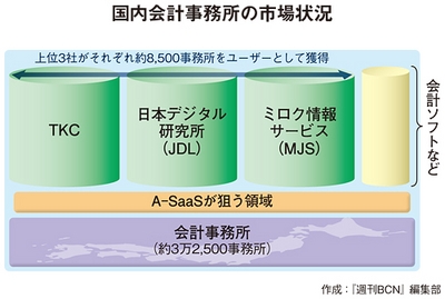 参入障壁の高い領域に挑む。よほどの勝算と覚悟がなければ、投資の回収は望めない。国内の会計事務所は、大小合わせて全国に約3万2500事務所が存在する。その8割には、TKC、日本デジタル研究所(JDL)、ミロク情報サービス(MJS)の上位3社の会計事務所向け専用機やシステムが入っている。新規参入して新しいシステムに覆すのは容易なことではない。“ホワイトマーケット”は、ほとんど残っていない状況だが、2009年6月、この領域に果敢に挑んだのが、アカウンティング・サース・ジャパン(A-SaaS)だ。(取材・文/谷畑良胤)
