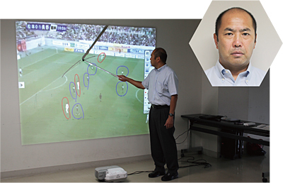 過去に松本山雅FCの監督を務め、現在はゼネラルマネージャー(GM)としてチームづくりの全権を担う加藤善之・常務取締役は、プロジェクターの選定にも関わった。加藤氏は、実際に使ってみて、「チームのミーティングにプロジェクターは不可欠な設備。エプソンの『EB-485WT』は、映像への書き込み機能が充実しているのが非常に便利。さらに、短焦点タイプなので、天井が低かったり、狭いスペースであってもストレスを感じることなく使えるのが大きなメリット」と評価する。遠征先では、どんなミーティングスペースが確保できるのか事前にわからないことも多いので、助かっているという。