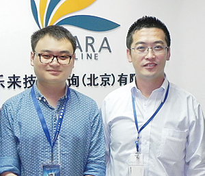 クララオンライン北京法人の高乃振総経理(右)と、易観国際の文藝総裁助理