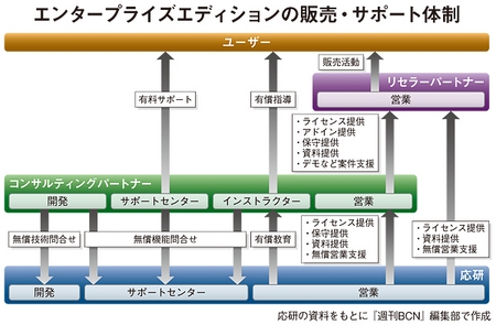 今回リリースしたエンタープライズエディションは、パートナーの独自開発の余地が大きい最上位版で、これを元請けで扱うには、「コンサルティングパートナー」になる必要がある。独自開発のウエートが大きいため、ユーザーのサポートも自社で引き受けなければならず、応研のインストラクター資格を取得した人員を揃える必要がある。