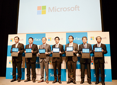 日本マイクロソフト(樋口泰行社長)は、9月2日、自社ブランドのタブレット「Surface RT/Pro」の法人向け販売を認定Surfaceリセラー6社で開始した。法人ユーザーは、認定Surfaceリセラーとなったウチダスペクトラム、大塚商会、キヤノンマーケティングジャパン、日立システムズ、富士ソフト、リコージャパンの6社とその関連会社という限定された販売ルートでのみ「Surface」を購入することができる。初めてのハードウェアの販売ということから、日本マイクロソフトは、故障などのサポートや、OEMメーカーに対する配慮もあって、リセラーを厳選する慎重な姿勢をとった。Windowsタブレット全体のシェア拡大のための起爆剤にしたいという狙いで「Surface」を拡販する。(真鍋武)