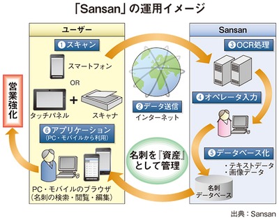 「Sansan」は、スキャナやスマートフォンを活用して、名刺をスキャンするだけで名刺情報をデータ化できるクラウドサービスだ。スキャンした情報は、専用の入力センターに転送され、入力オペレータがデータ化する。セキュリティ対策として、入力オペレータの入退室管理や、施設の自動施錠、メディアの持ち込みやプリントスクリーンの禁止など、情報漏えいを防ぐための万全の態勢を敷いている。名刺情報のデータ化のスピードも速く、他社がデータ化するまでに1週間程度を要するのに対して、「Sansan」は、1営業日内にデータ化できる。さらに、99%の正確性を保持しており、入力情報にバラつきがない。エン・ジャパンの提示した条件をすべてクリアしていた。