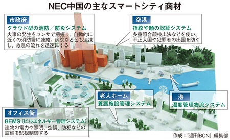 NEC中国は、都市化に向けた政府のIT投資は毎年17%前後の率で成長し、2014年に1兆元(約16兆円)を超えると予測。とくに都市化が活発な内陸部でスマートシティの需要が高いと捉えて、内陸部の各政府に対しての提案活動を加速する。「市街地にセンサを設置して、怪しい人物がいないかどうかを監視する」(日下総裁)機能を全面に打ち出し、ハードウェアとソフトウェアの組み合わせによってNECの強みを訴求する狙いだ。