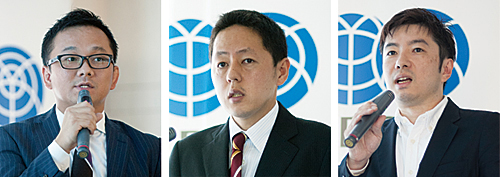 (左から)エヌシーアイ 下野昭一部長、ミック経済研究所 佐久間尚基研究員、トランスコスモス 坂祥明部長代理