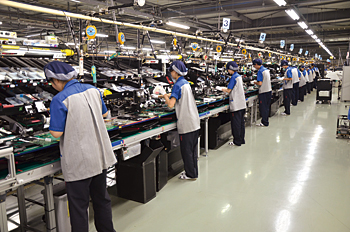 島根県出雲市斐川町にある島根富士通(宇佐美隆一社長)は、プリント基板から装置まで一貫して製造する国内唯一のノートPC生産拠点だ。100%国産のPCという特徴のほかに、ユーザーのニーズに柔軟に対応できるカスタマイズサービスを強みとしている。2014年4月9日にサポートが終了する「Windows XP」からのPCの乗り換え需要が高まっていることを受けて、工場では増産体制を敷いている。13年5月には、これまでの累計生産台数が3000万台に到達した。(取材・文/真鍋武)