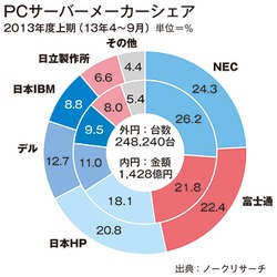 国内x86サーバー市場における日本IBMの台数シェアは8.8%(ノークリサーチ調べ、2013年4~9月)で順位は5位。x86サーバーの事業がレノボに移ることは、他のx86サーバーメーカーにとって好材料になるか、それとも脅威になるのか。ライバルメーカーの幹部数人にコメントを求めたが、他社の話だけに、共通して口は重く、匿名を条件にいくつか語ってくれた。ライバルの声は、さまざまだ。