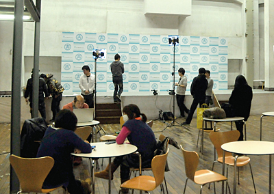 タレントが登場する記者会見のセッティングを行う。新宿にある東京本部は、古い学校の校舎を改装し、旧体育館をイベントスペースとして活用している。メールシステムをデータセンターに移すことによって、災害対策を講じた