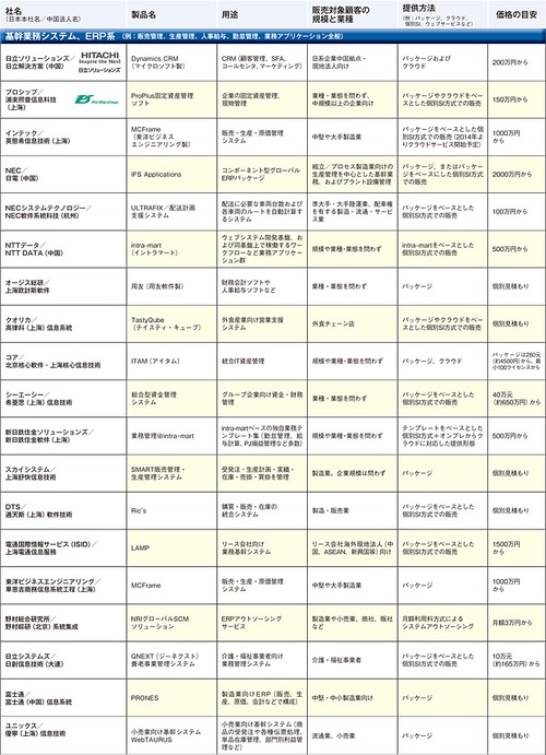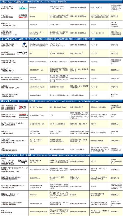 中国での日系ITベンダーの主力商材