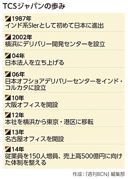 TCSは、日本法人を立ち上げる前の1987年に、インド系SIerとして初めて日本市場に進出した。現在は、ウィプロ・ジャパンやInfosys Japanなど、ほかにもインドに本社を置くSIerが日本でビジネスを展開しているが、規模や成長の勢いでは、TCSジャパンと肩を並べるには至っていない。
