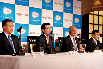新体制の発表にあわせて来日した米セールスフォース・ドットコムのキース・ブロック社長兼副会長は、新しい経営陣を紹介し、加えて「日本法人を売上高10億ドル(約1000億円)にして、従業員数を2000人以上に増やす」との成長目標を発表した。