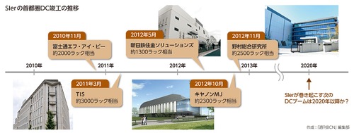 クラウドサービスの勃興期は、新しい技術が次から次へと登場し、自前でのDC運営のノウハウがなければ新技術に追随できない焦りと、2000年前後のネットビジネス隆盛期に建てられたDCの更新期とが重なったことから、SIerのDC建設が、ここ数年増えていた。首都圏だけでも、TISやNRI、キヤノンマーケティングジャパン、新日鉄住金ソリューションズ、富士通エフ・アイ・ピーなどが最新鋭のDCを竣工している。SIer各社はユーザーの初期の需要は満たしたものの、このままDC設備の拡張を続けるかどうかの判断を迷っているところだ。大手SIer幹部からは「DCの設備貸しだけでは価格競争に勝てず、受注すらも難しい」という声が聞こえてくる。