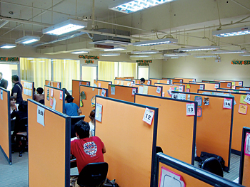 セブのコールセンタースタッフの給料は、東京のおよそ半額という。この安くてなまりの少ないフィリピン人を起用して、英語圏に向けて英語でのコールセンター事業を始めた。本格的な営業を開始したのは今年4月で、これからが本番。オフィスは300人のスタッフを収容できるスペースを確保した。現在のオフィスは空いたスペースが目立つが、営業の感触は良好で、武田本部長の表情は明るい。