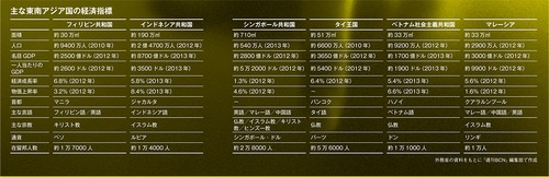 フィリピンの人口は1億弱、2012年の名目GDPは約2500億ドルで成長率は約7%。人口やGDPはトップではないが、成長率についてはASEANのなかで1位を獲得している。多くの日本のITベンダーが進出する東南アジアの国は、シンガポールやタイ、ベトナムで、フィリピンはあまり聞かないが、成長力という指標だけでみると、この国は最有力候補だ。フィリピンの主な経済指標や基本情報を表にまとめた。この表以外の情報は、外務省やJETRO(日本貿易振興機構)、IMF(国際通貨基金)などの団体のウェブサイトで、より詳細に把握することができる。