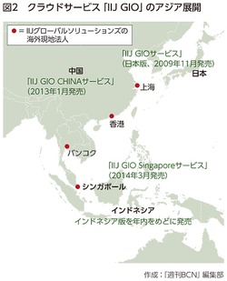 IIJは、独自商材の「IIJ GIO」を2009年に日本で発売した。2013年、中国での販売開始を皮切りに、アジア展開に乗り出し、将来はアジア主要国に広げることを構想している。現地での提案活動や販売は、グループ会社のIIJグローバルソリューションズを通じて行っている。14年3月に投入した 「IIJ GIO」のシンガポール版は「すでにお客様がついている」(鈴木会長)というように、好調なスタートを切った模様だ。