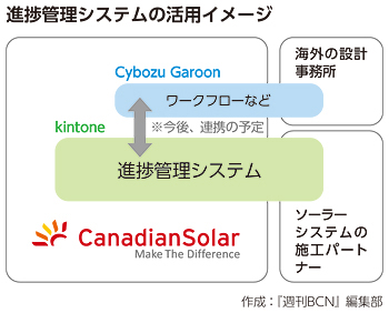 カナダが本社のカナディアン・ソーラーは、2001年の創業以来、太陽電池の専業メーカーとして、グローバルで太陽光発電システムを供給してきている。日本法人の設立は2009年。環境意識の高まりに加え、2012年7月に太陽光など再生可能エネルギーの固定価格買取制度がスタートしたこともあり、業績を順調に伸ばしてきている。一方で、情報共有や進捗管理などの現場で活用するITツールは、Excelファイルを使った簡易的な対応にとどまっており、同社の成長に追いついていなかった。