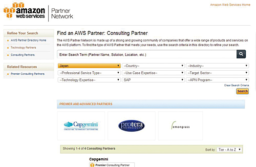 AWSは、APN(Amazon Web Services Partner Network)というパートナープログラムを用意している。このプログラムで用意するカテゴリは、「コンサルティングパートナー」と「テクノロジーパートナー」の二つ。「コンサルティングパートナー」は、SIerやCIerなどのインテグレータ、「テクノロジーパートナー」はISVやプラットフォーム事業者などが対象だ。
