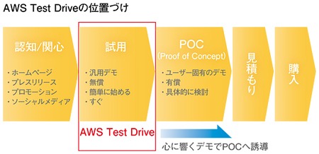AWSは、APNパートナーのビジネス支援策として、「AWS Test Drive」というサービスを提供している。これは、APNパートナーのソリューションに興味をもったユーザー企業に、そのソリューションを無償で試用できる環境を提供するサービスだ。