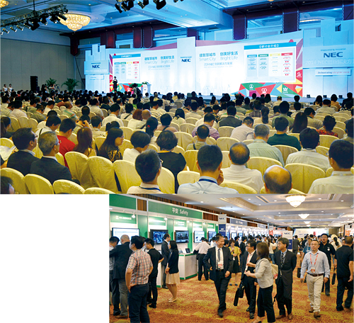 また、遠藤社長は、ICTのトレンドについて、データサイエンスやIoT(Internet of Things)、SDN(Software Defined Network)、センサによる認識など、最新技術が加速度的に普及していくことを予測。NECが得意とするセンサを活用した認証技術など、最新技術を紹介し、中国市場に向けては、スマートシティの構築にかかわる「平安(Safety)」「健康(Health)」「効率(Efficiency)」「公平(Equality)」の各分野に向けたソリューションの提供を通じて、社会インフラの高度化に貢献していくことを強調した。