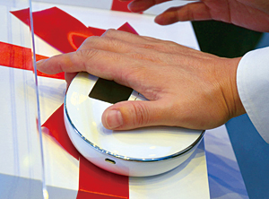 「健糖宝(仮称)」は、手を数秒かざすだけで血糖値を測定できる簡単に血糖値を測定できる「健糖宝」