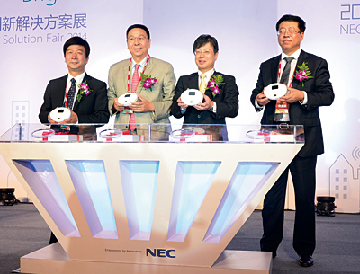 NEC(遠藤信博社長)とNEC(中国)(日下清文総裁)は、7月4日、中国・北京の中国大飯店で、プライベートイベント「NEC Innovative Solution Fair 2014」を開催した。2008年から実施している年次イベントで、7年目の今回は「Smart City, Bright Life」をテーマに、基調講演やセミナー、新製品発表、展示などを通じて、NECがスマートシティ分野で中国市場に提供している各種ソリューションを紹介した。(取材・文/上海支局 真鍋武)