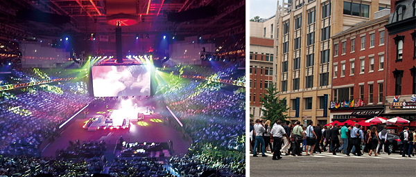 基調講演会場と展示・各セッション会場を分け、合計2会場で開いた。移動するパートナーで街が混雑する場面もPoint 2 キーワード