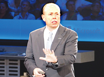 一方のモバイル。タブレット端末やスマートフォンで後れをとっているなかでモバイル市場に「チャレンジャーとして」(ターナーCOO)立ち向かうという意思を示した。ターナーCOOは、世界の全デバイス(端末)を対象にしたマイクロソフトのシェアは、「(わずか)14%」という数字を基調講演の場で披露した。パソコンでは90%以上のシェアをもつマイクロソフトにとって屈辱的な数字のはず。「社外に公表したことに驚いた」(日本マイクロソフトの伊藤かつら執行役)という声もある。それだけ危機意識をもっているということを表したかったのだろう。同時に、「巻き返す」という決意表明とも感じた。