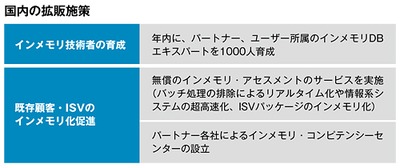 国内では、約1000社のパートナー網と2万8000社の顧客基盤をフル活用し、インメモリDB市場のトップベンダーを目指す。まずは年内に、パートナー、ユーザー所属のインメモリDBエキスパートを1000人育成する。さらに、ユーザーやISVパートナーに対する無償のインメモリ・アセスメントサービスも行い、Oracle Database In-Memoryへの移行を支援していく考えだ。
