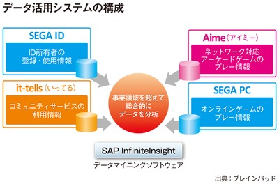 セガが導入したのは、SAPのデータマイニングソフトウェア「SAP InfiniteInsight」を使って構築したデータ分析基盤だ。セガはこの基盤の上で、「SEGA ID」所有者の登録・使用情報やネットワーク対応アーケードゲームのプレー情報など、同社が提供している各サービスで集めたデータを一元管理し、分析することによって、データの裏にある「ユーザー像」を見える化しようとしている。システムは、データ解析に強いブレインパッドがつくった。セガは、専門家でなくても分析作業ができるとされる「SAP InfiniteInsight」の特徴を生かしてデータ活用に取り組み始めると同時に、ブレインパッドのデータサイエンティストの力を借りて、「データ」で新しいビジネスを生み出すことを目指している。