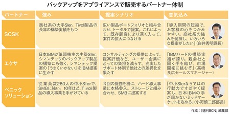 日本IBMが手を組んでいるパートナー3社は、大手~中堅(SCSK)、中堅(エクサ)、中堅~中小(ベニックソリューション)というふうに、それぞれの規模のユーザー企業を網羅している。TSMのソフトウェアとして長年の販売・構築実績をもつだけでなく、日本IBMが筆頭株主になっているエクサのように、資本で日本IBMとつながっている企業もある。