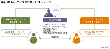 社長 奉行i8 for クラウドは、OBCがSaaSとして提供するわけではないという点が、先行するクラウド型業務ソフトと大きく異なる。OBCは、同社とパートナーシップを結んだパブリッククラウドベンダーのIaaS(パートナークラウド)上で奉行i8 for クラウドを動かすことを前提に、動作保証と専用のサポートサービスを提供する。現時点で明らかになっているパートナークラウドは、「Microsoft Azure」「IBM SoftLayer」「BIGLOBEクラウドホスティング」の三つだが、順次拡張する方針だ。そして、これらのパブリッククラウドを利用して、奉行i8 for クラウドを導入するのは、販売パートナーの役割になる。OBCとしては、ここでパートナーに収益を確保してもらおうという思惑がある。