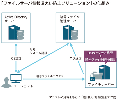 システムの維持・管理を行う必要があって、特権IDにアクセス制御を設定しないままにしていたら、重要データを不正に利用されてしまった──。顧客情報の流出を防ぐには、万が一、重要データが持ち出された場合でも、そのデータを活用できないようにすることが重要な対策となる。その課題を解決するのが、データを暗号化することで不正利用を防止する、アシストの「ファイルサーバ情報漏えい防止ソリューション」だ。