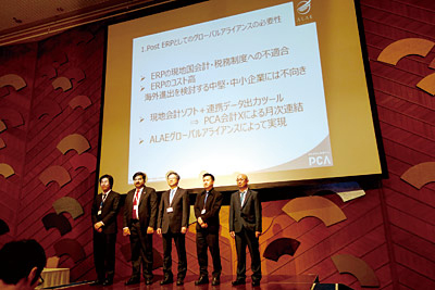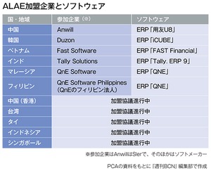 ピー・シー・エー(PCA、水谷学社長)は、東アジア、東南アジアの有力業務ソフトメーカーやSIerと連携し、会計・ERPソフトのグローバル・アライアンス・グループ「ALAE(アーレイ=ラテン語で翼を意味する)」を立ち上げた。日本企業がアジア諸国に進出する場合に、現地のALAE加盟企業が提供する会計・ERPソフトの導入を支援し、同社の主力製品である「PCA会計X」とデータ連携することで、安価に業績管理の一元化を実現するというコンセプトだ。多言語多通貨対応のERPなどに比べて非常に少額な投資で済むことから、中小企業の海外進出を強力に後押しする効果が期待できそうだ。(本多和幸)