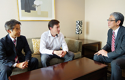 (左から)ミランティス・ジャパンの下平中・リージョナルディレクター、米ミランティスのボリス・レンスキー・共同創業者CMO、CTCの安藤俊・情報通信システム事業グループ情報通信事業企画室室長 米ミランティスは具体的な業績を公開していないが、2016年の後半に株式公開を予定。日本市場には、将来的にグローバルの売り上げの20~30%を期待しているという。グローバルベンダーでは、一般的に日本の売上比率が10%を超えるだけでも大成功といえるだけに、相当意欲的な数字だ。しかし、レンスキーCMOは、「現実を踏まえての構想で、無理だとは思っていない」と言い切る。