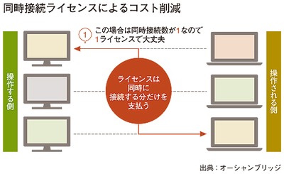 「当社にぴったりじゃないか」──。朝、メルマガを開いたとき、伊東プロジェクトマネージャは瞬時に、そう思った。メルマガ本文で、オーシャンブリッジが訴求したのは、「同時接続ライセンス」によるコストメリットだ。この仕組みでは、1ライセンスを取得すれば、社内のユーザー数とは関係なく、ISL Onlineを使い放題で利用することができる。