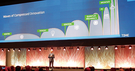 11月に米ラスベガスで開催されたCAの年次イベント「CA World '15」でマイク・グレゴアCEO(写真1)は、現代の企業にはアプリケーションを高速に開発・投入し、継続的に品質を高めていくことが求められると強調した(『週刊BCN』1607号・3面参照)。製造、流通、金融、運輸などあらゆる産業で、ITを使いこなすことが競争力の源泉となる時代になっているからだ。オットー・バークスCTO(写真2)も同イベントの講演で、テクノロジーへの投資は「利益を絞り出すのではなく、トップラインの収入を成長させるものである」と話し、既存ビジネスの収益性を改善するという発想にはとどまらず、IT活用によってビジネスの規模そのものを拡大できるとの考え方を示している。