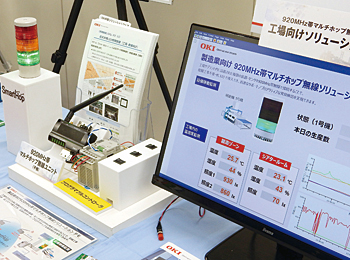 製造業向けでは、2012年に国内でもセンサネットワークでの利用が可能となった、920MHz帯の電波を使うマルチホップ無線機器などを展示。無線LANで使われる2.4GHz帯や5GHz帯に比べ、電波の到達性がよいのが特徴で、工場の生産設備におけるIoT導入等で需要が期待できる技術だ。国内の製造業では大量生産よりも、高付加価値製品の少量多品種生産へ重点戦略がシフトしている。1日の中でも午前と午後で作る製品が異なることがあり、生産ラインの組み替えが頻繁に発生するが、センサ網を無線化すると、ライン組み替え時間が短縮され、生産設備の稼働率向上にも寄与するという。