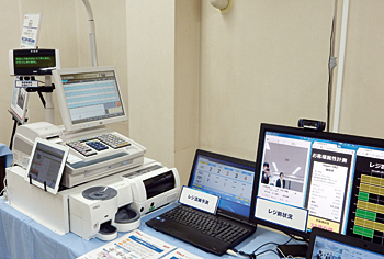 流通向けには、来店客の属性をもとにレジの混雑状況を予測するソリューションを参考出展した。沖電気ではカメラの映像に映った人物の年齢と性別を推定する客層分析システム「RESCAT」を開発・販売しているが、入店から会計までに要する時間には客層によって特有の傾向があるため、店舗入口のカメラ映像を分析することで、何分後に何人のお客がレジに到達するかが予測できる。小売店ではレジが混雑してくると店内放送で応援を要請する場面がしばしばみられるが、この予測ソリューションを用いることで、混雑具合が許容範囲を超える前にレジの増員をかけられる。