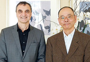 米IBMのマーク・デュパキエ・ゼネラルマネージャーと日本IBMの岡田和敏・執行役員