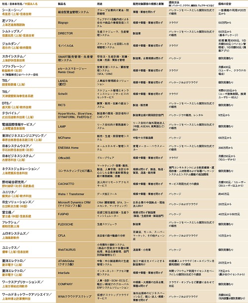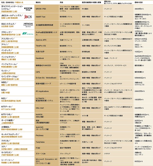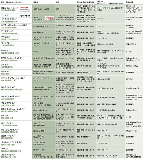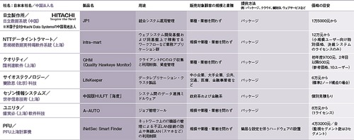 中国での日系ITベンダーの主力商材