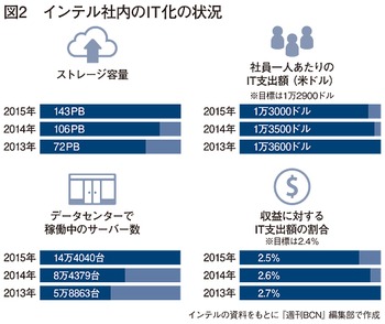 インテルでは、自社のIT部門における業務改革に向けての取り組みと成果について1年ごとに発表しており、レポートも作成している。2016年のレポートタイトルは「FROM THE BACKROOM TO THE BOARDROOM(舞台裏から役員室へ)」。これは、従来なら裏方の作業をしていたIT部門が、いまでは大きなビジネス価値を提供できるため、IT戦略は経営戦略そのものであることを意味している。