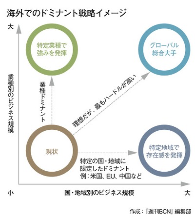 海外M&Aで、いきなりその国の上位SIerに食い込むのは難しくても、金融なら金融、製造なら製造に強いSIerを重点的にグループに迎え入れることで当該国・地域での業種カットでの“ドミナント戦略”を展開。また別の切り口として、国や地域の単位でランキング上位に食い込み、ビジネスを有利に進めていく基盤を視野に入れたM&Aを採り入れるなど、柔軟性ある海外ビジネス戦略も有効だろう。