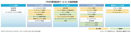 ユーザー企業がITOA運用監視サービスを導入するメリットは、(1)システム全体をより安全確実な稼働に導くマネジメント・プロセスの構築、サイロ化された運用監視システムと体制の統合による運用の効率化と費用の削減(2)定量的なデータによる意思決定支援(3)アプリケーション・モニタリング(監視)に関する開発費用、運用費用の削減(4)自動化と計測およびデータ共有によるDevOpsの実現(5)自動で継続的なセキュリティ・モニタリングによるセキュリティ・レベルの可視化と運用工数の削減──などだ。また、ITに関する運用・管理手法を体系的にまとめたガイドラインの新バージョン「ITIL V3」への適用範囲も広い。
