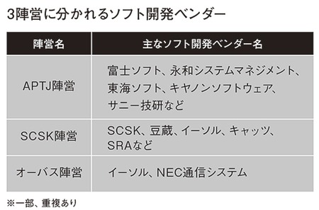 3陣営の内訳をみると、デンソー子会社のオーバスを除いて、APTJやSCSKはソフトベンダー主導で開発を推進。APTJの高田広章会長は、「自動車・部品メーカーとは共同開発にとどめ、出資を受け入れるのは主にソフトベンダーを中心とする」方針を示しており、顧客である自動車・部品メーカーに対しては中立性を保つ戦略を打ち出す。